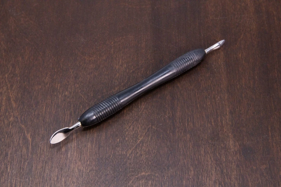 If you’re using a chemical method (e.g. acetone) or an indirect heat method (e.g. oven) to de-sole, the two sizes of pointed and curved spoons on the tool work much like a bone folder would in delaminating the shoe adhesive; but, with a higher degree of precision and control. Â