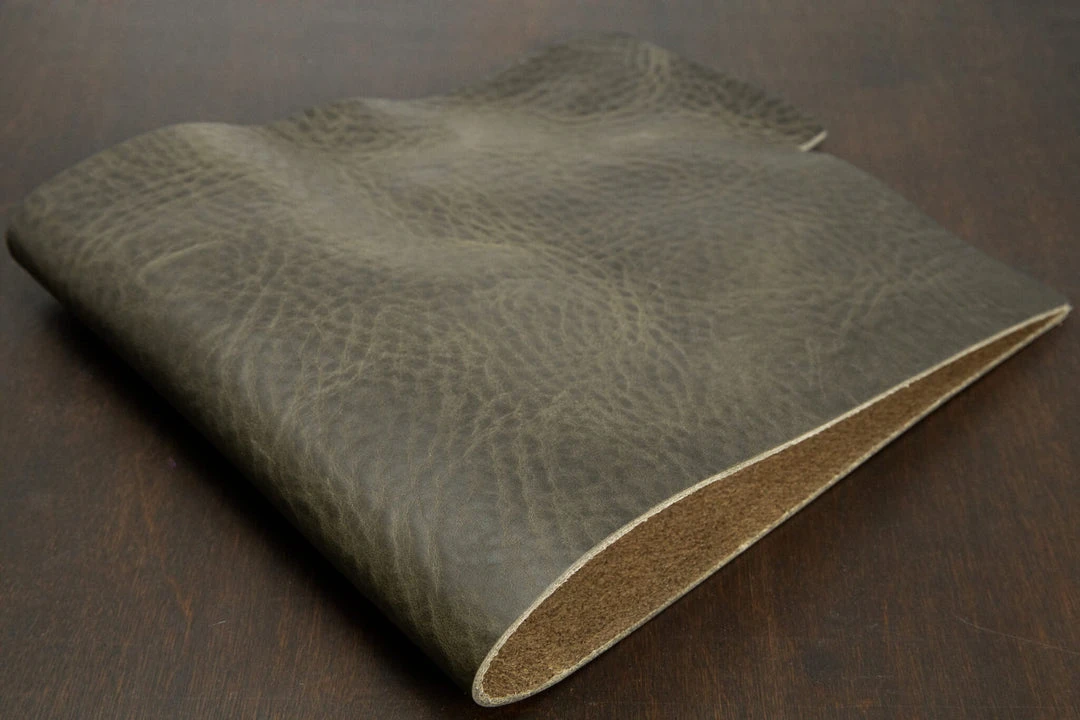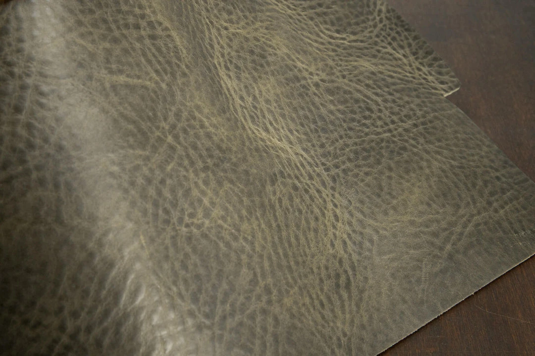 Amazzonia is a waxy 100% Italian veg tan with a matte finish and CRAZY pull-up.  It’s lightly tumbled, giving it a medium-firm temper along with a grain texture that can range from very smooth to very pebbled.